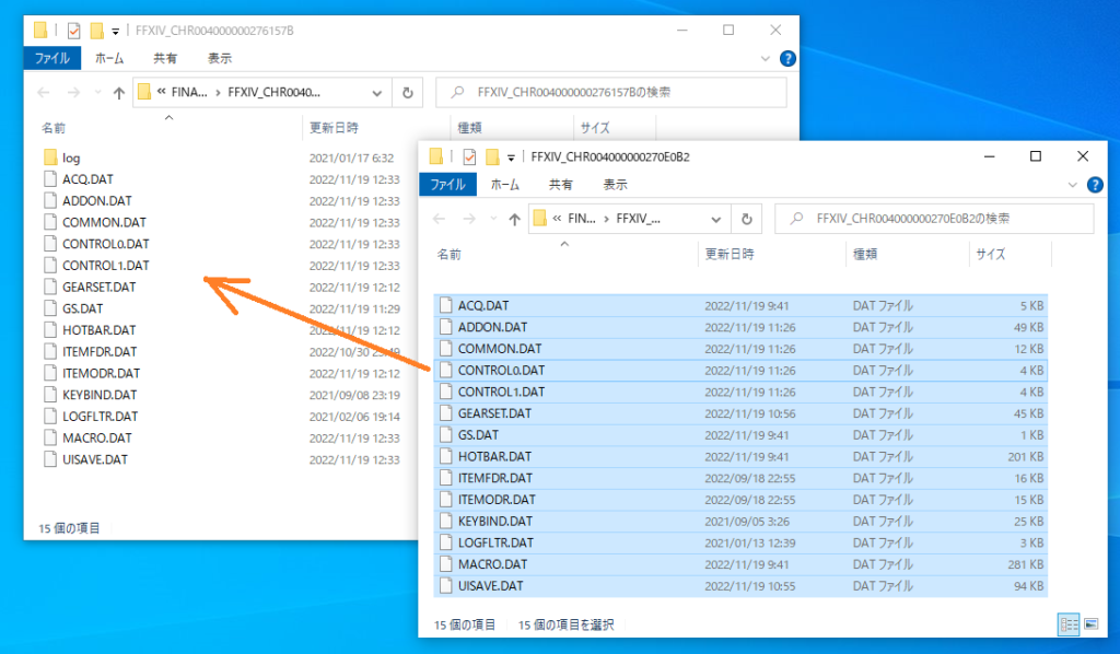 (コピーする前にコピー先のキャラクターのフォルダをバックアップしておきましょう。)