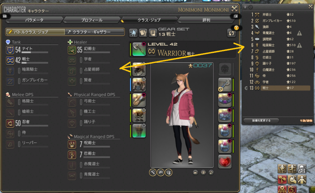 覚えていないジョブのギアセットが...